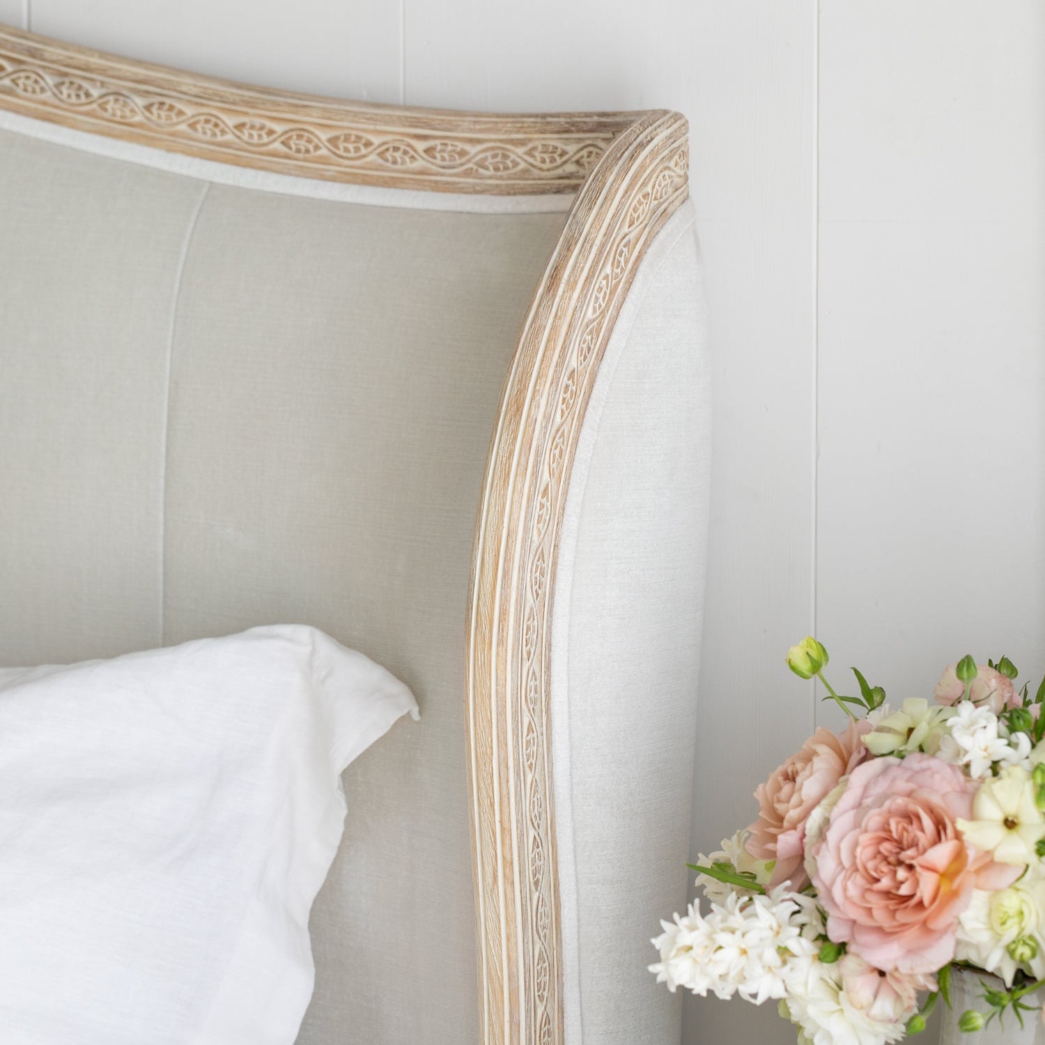 Helena Bed with Footboard in Salt Velvet and Pale Poplar Finish