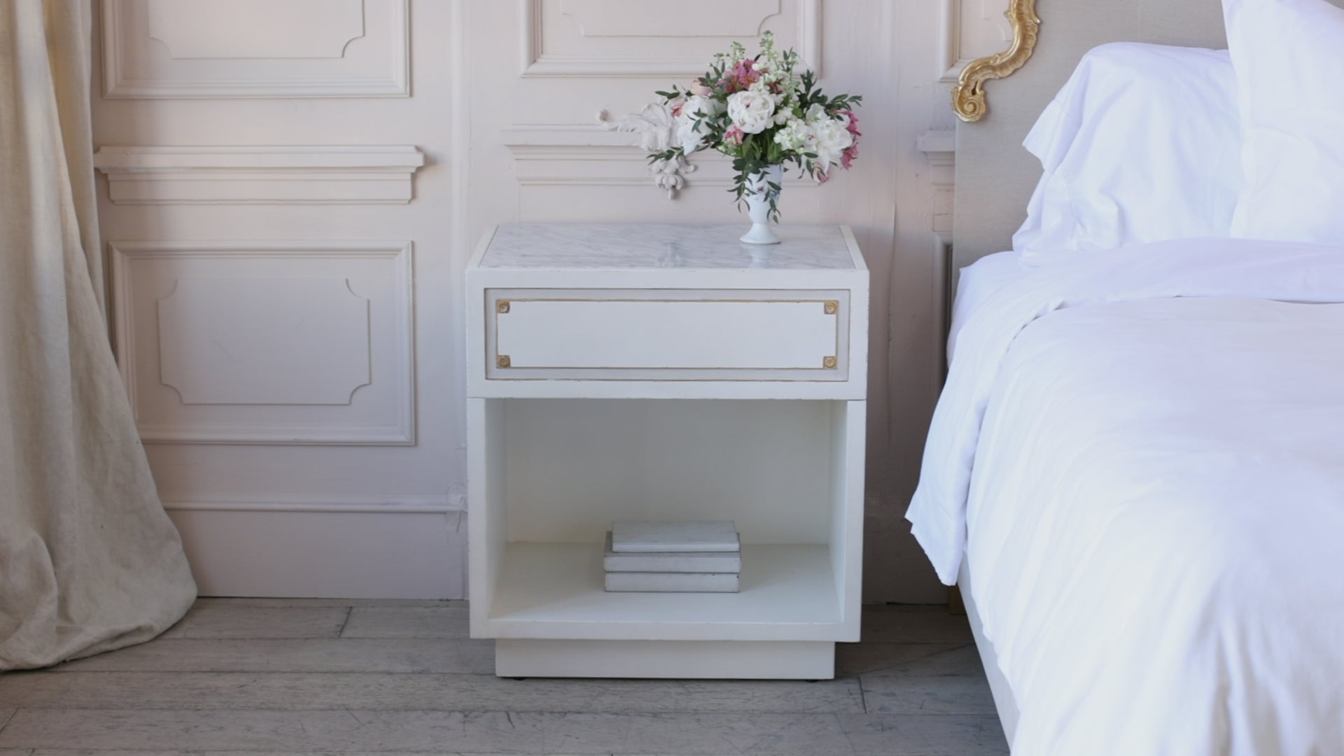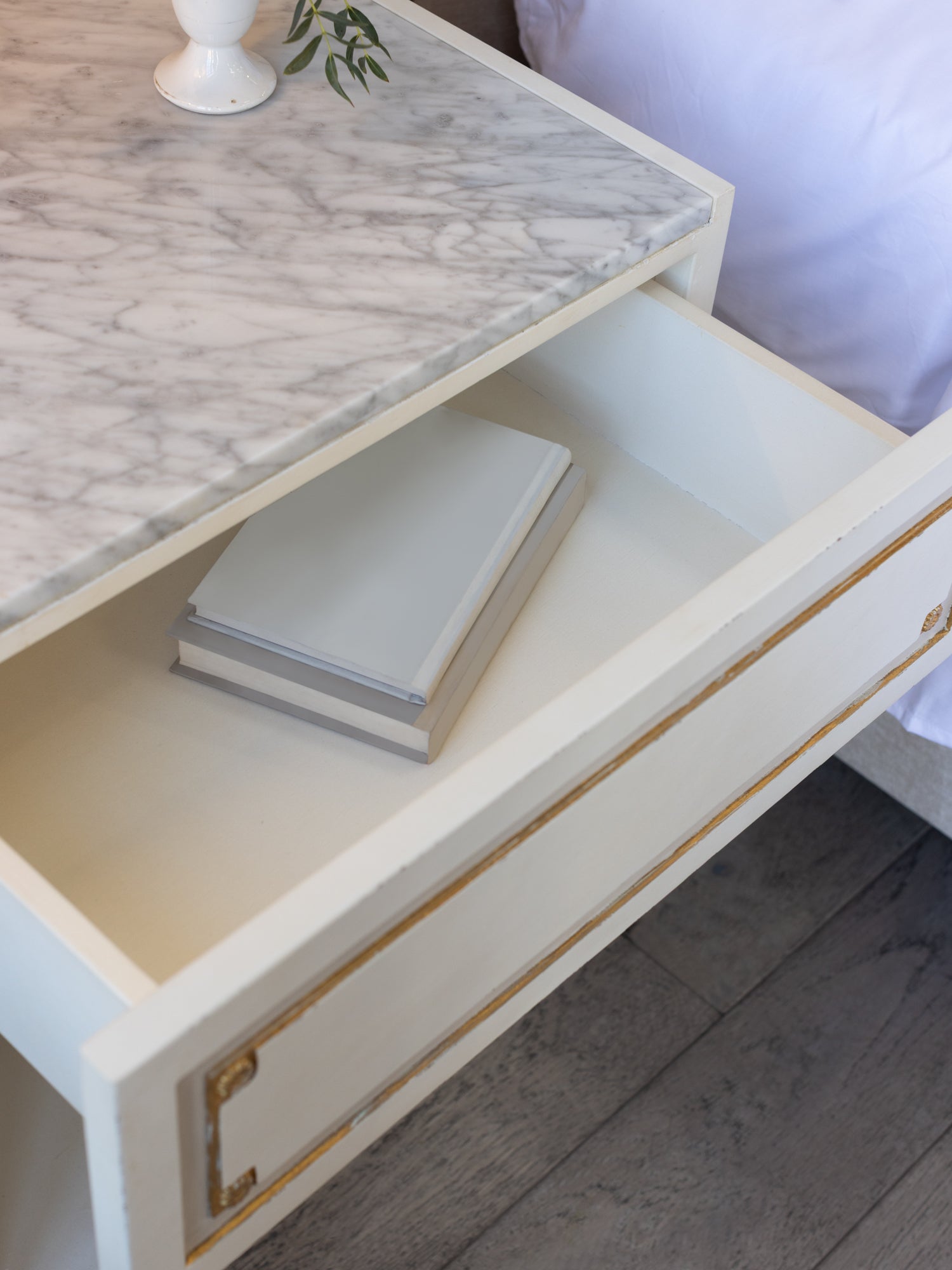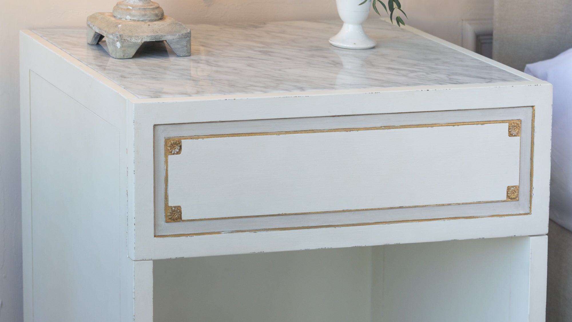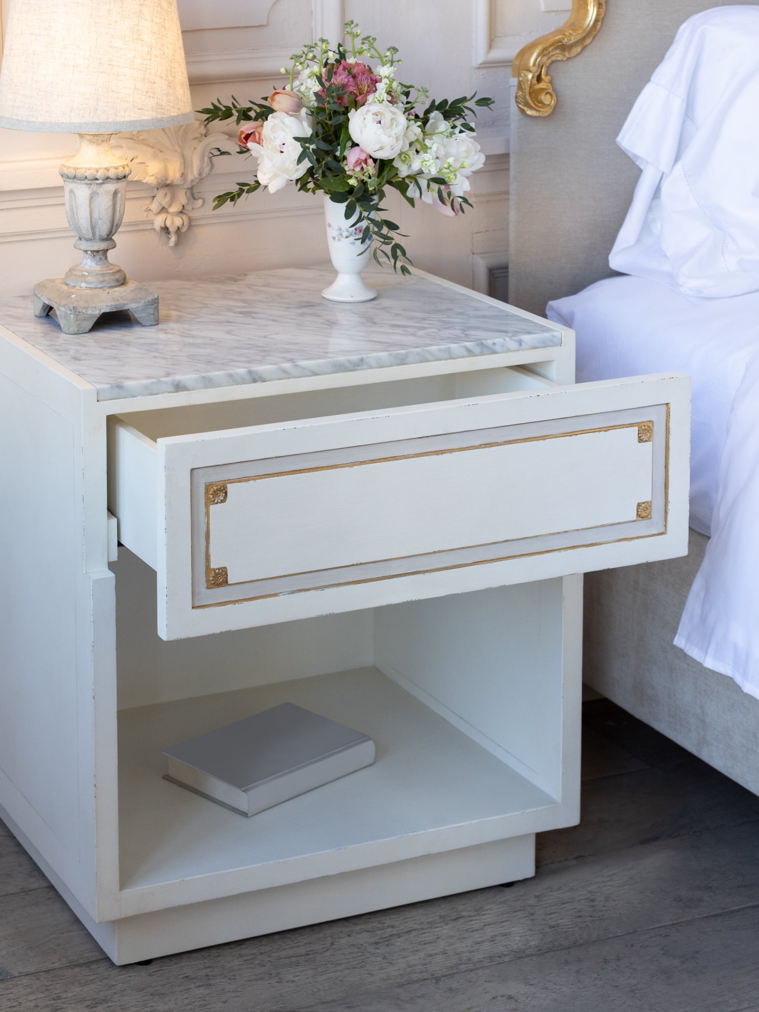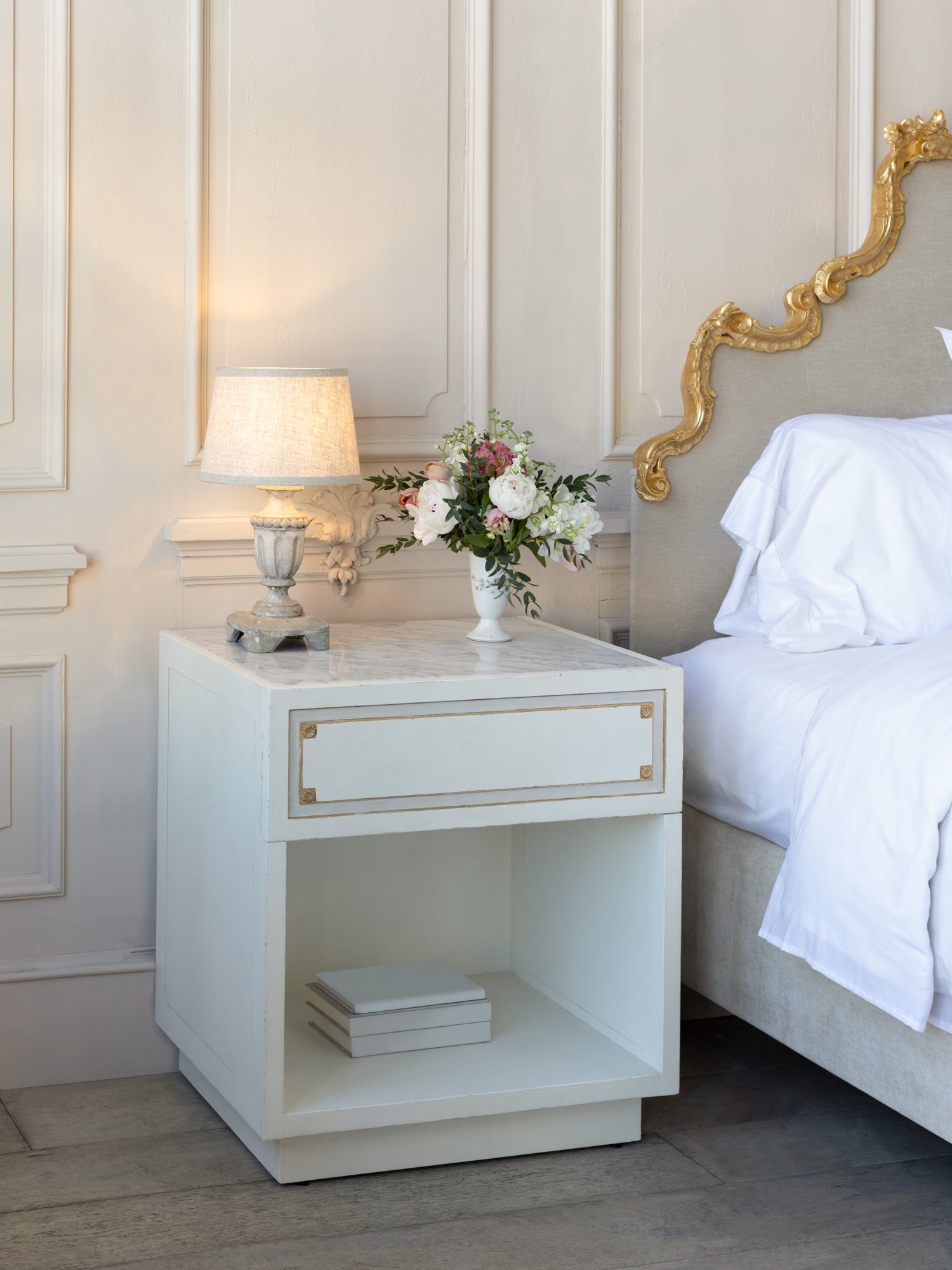 Henri Nightstand in Froth White and Gold Highlight Finish