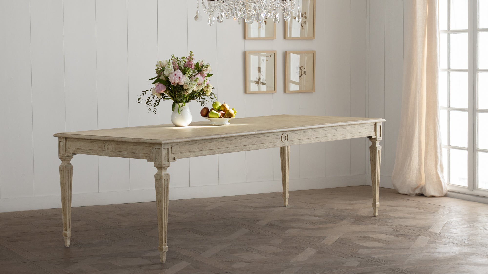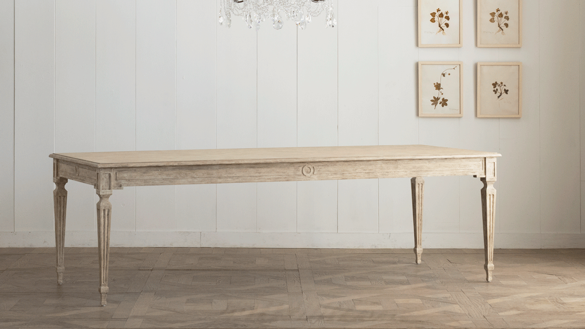 Grande Gustavian Dining Table in Oak Driftwood Finish
