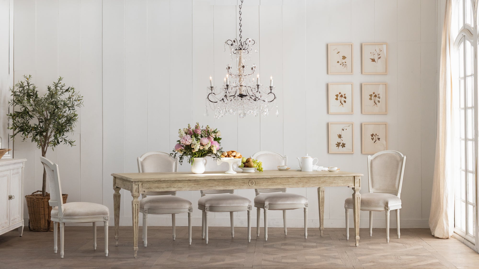The Eloquence® Grande Gustavian Dining Table is a distinguished piece. This piece is crafted from Rubberwood and features the masculine square fluted leg named by its creator; the Swedish King, Gustav III. The Gustavian Dining Table is a classic piece which is modernized by its hand-applied artisan wood finish.