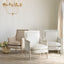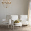 Ivory Velvet (40% Rayon, 60% Cotton) Upholstery. Seat cushion has 3 inch high density foam core with 40% feather and 60% poly blend wrapped envelope.