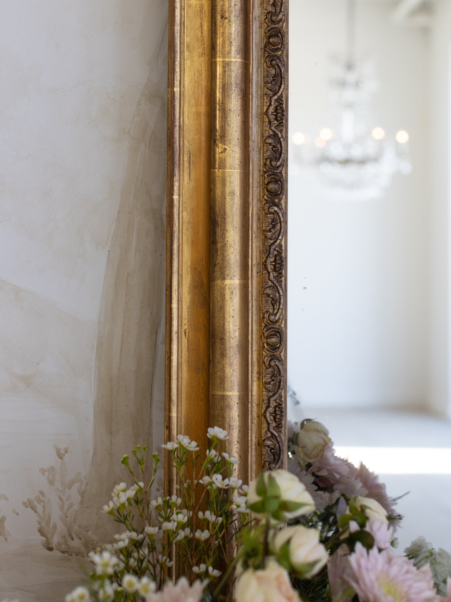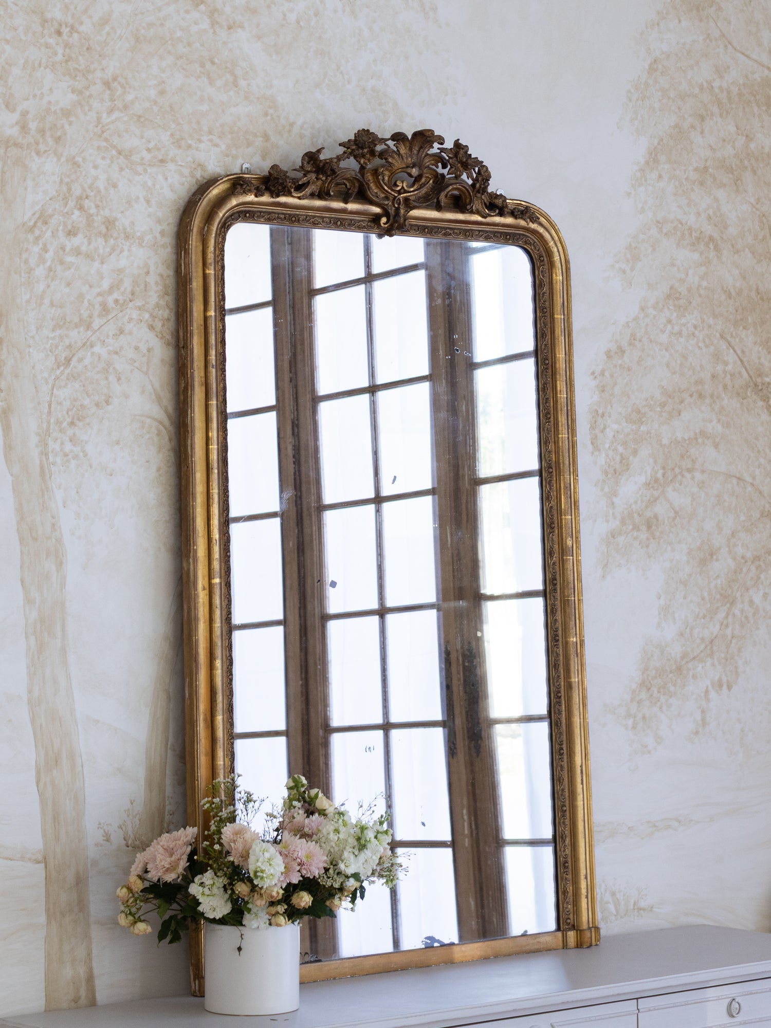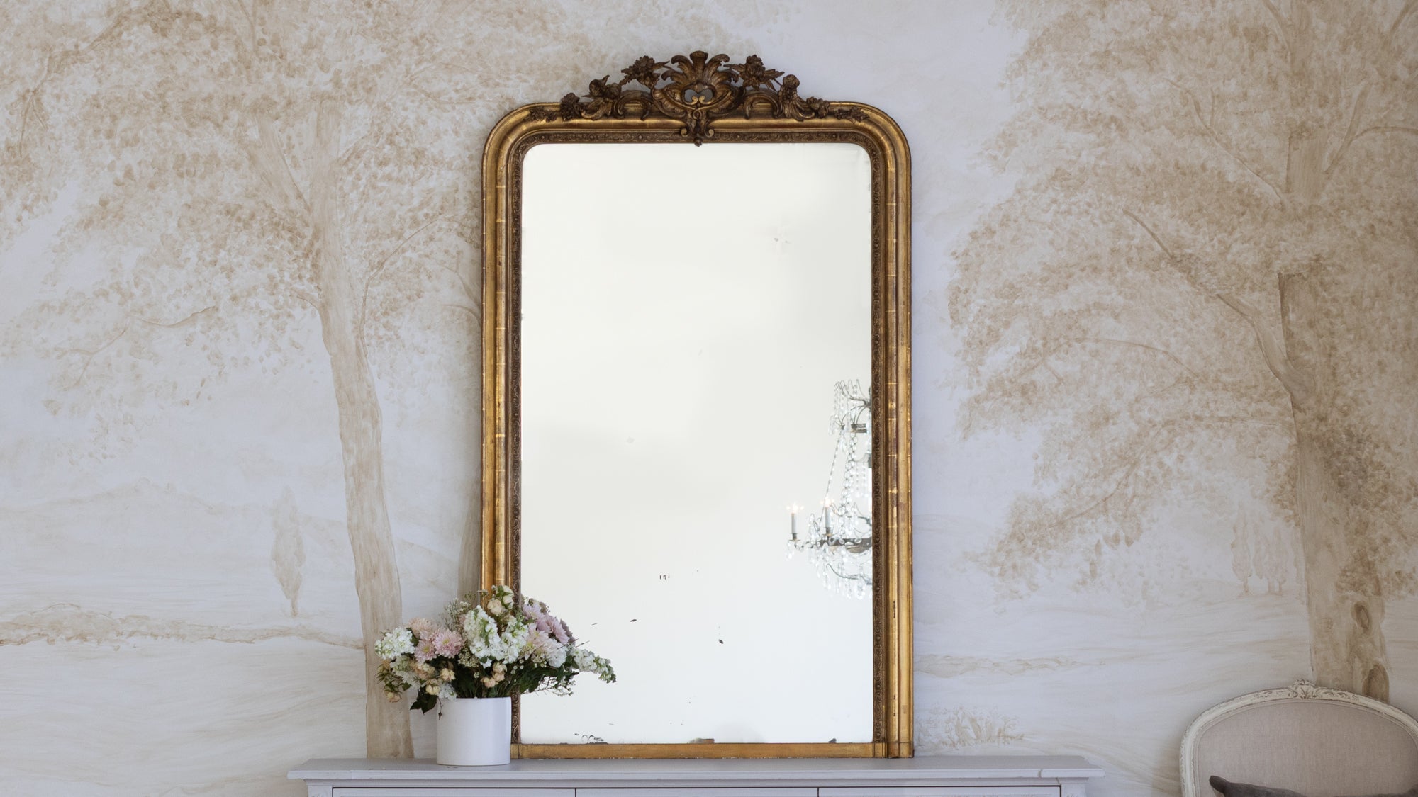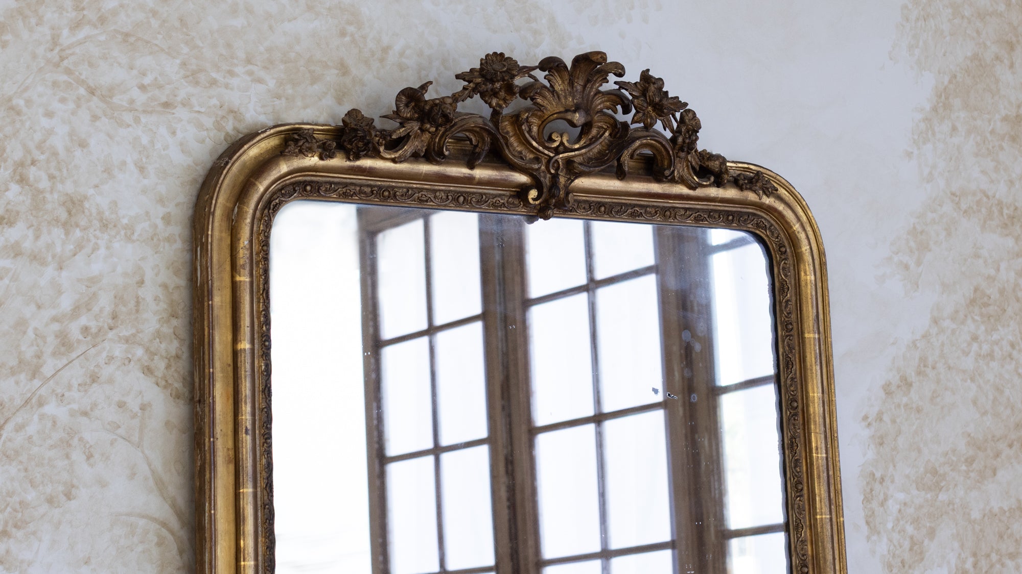 Antique mirrors have a natural patina on the mirror/frame, which is a result of time and use. These mirrors are not sold with hanging hardware. Please consult a professional to safely install your mirror in your home.