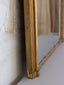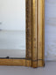 Striking Antique Gilt Louis Phillipe Mirror from the 1850s. Striping on the frame illuminates this piece. The mercury mirror edges carry strings of serpentine patterning that feature lotuses at the center. Alternating between the details are oval beads traveling all around the frame. A crown of leaflets sits atop the crest and is accompanied by florals and rosette motifs. A gorgeous brick rest patina emerges through the wear, giving this a warm and shining look.