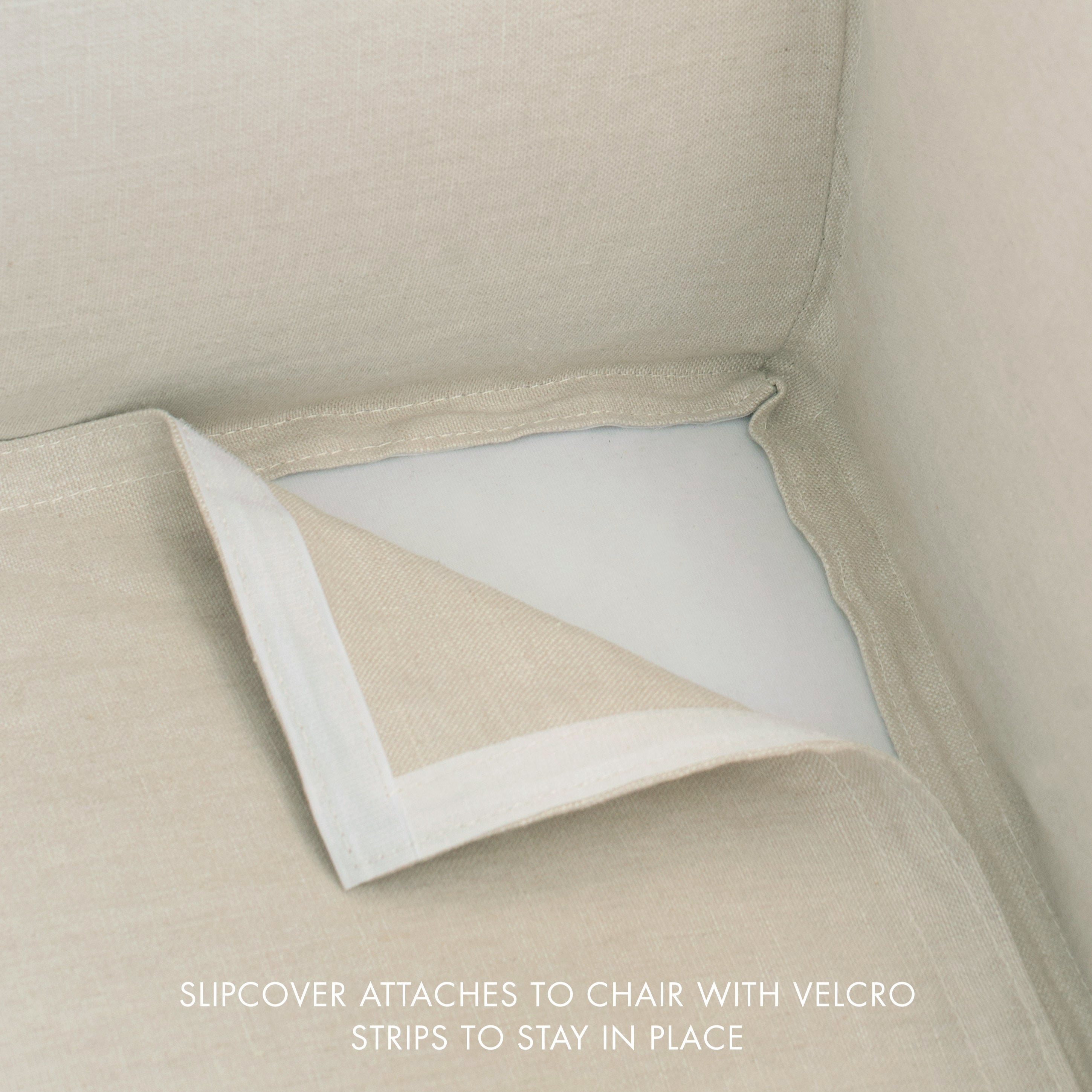 100% Harvest Linen Removable Fabric Slipcover. Slipcover has Velcro secure attachments to keep the seat cushion in place.