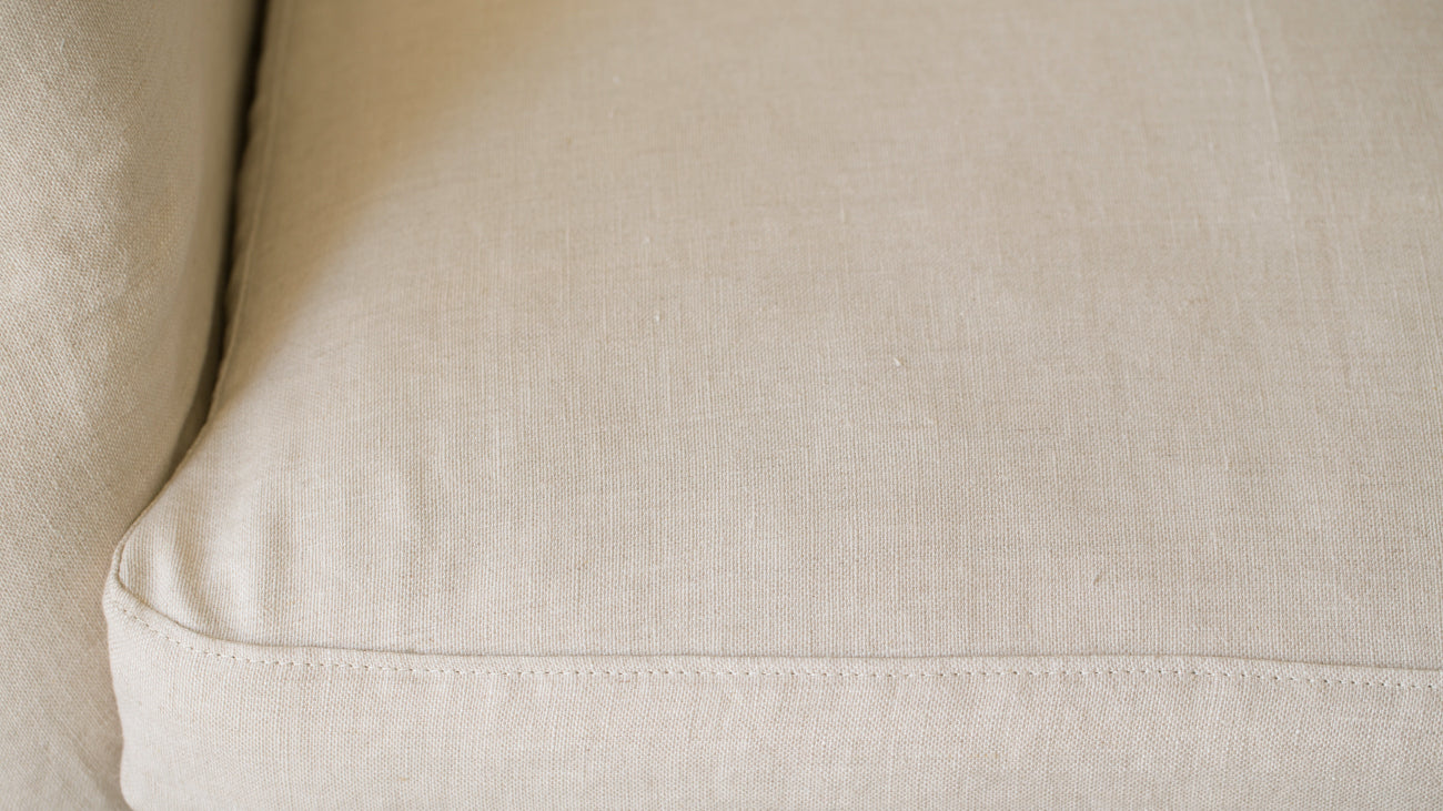 Slipcover and cushion covers may develop wrinkles due to use. To achieve a more tailored look steaming is suggested.