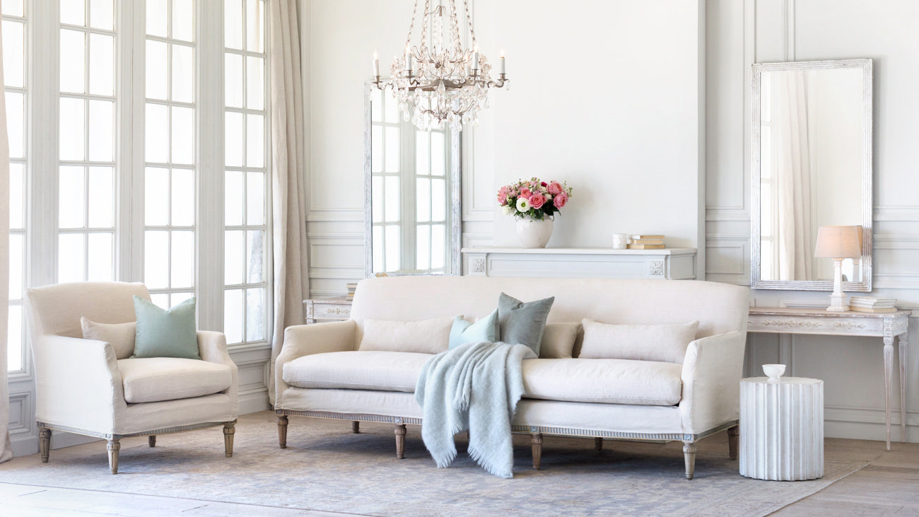 The Eloquence® Louis Cannes Sofa fuses clean Swedish lines with the classic Louis XVI style in this modern antique re-edition. The sleek, removable, & interchangeable fabric slipcover sits atop a handsome, hand-crafted, oak wood base featuring a fluted apron and hand-carved starburst medallions inspired by Swedish antique armchairs. With a trio of cozy lumbar pillows and its deep-set seat, the Louis Cannes Sofa is a comfortable yet elegant piece that will stand the test of time.