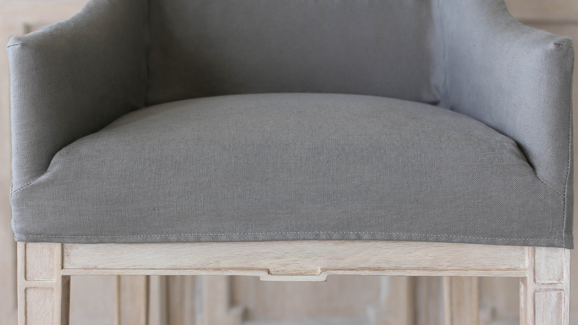 Scandinavian Counter Chair in Slate Grey Linen Slipcover and Worn Oak Finish